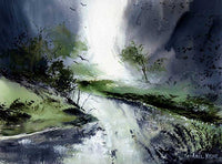 This almost monochromatic watercolor painting is about rain and the drama it creates in the sky. It will match any wall color or decor. Your guests will be mesmerised to watch this artwork. This painting will attract attention. It's small and cute.  Watercolor painting on paper - Just 12" X 9" - Unframed
