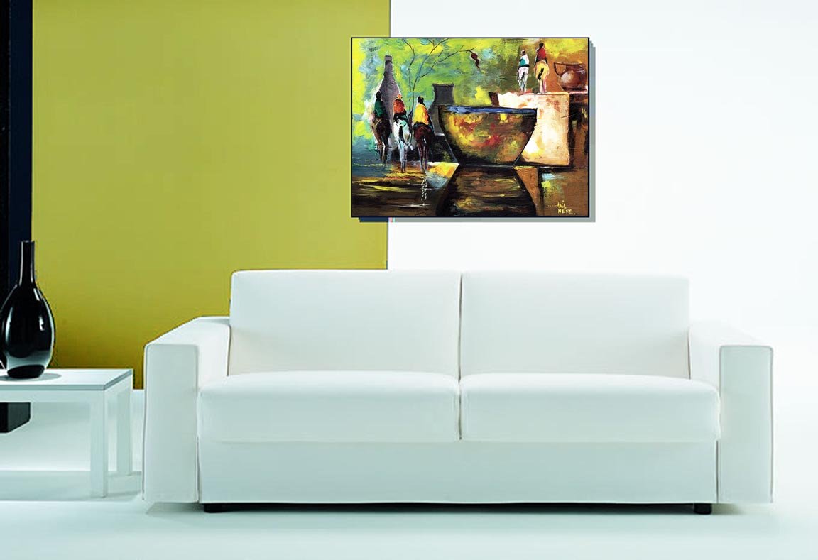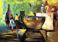 This Horsemen Original Handmade Acrylic Painting will be good for horse lovers and rustic background homes. This is kind of surreal painting with large vessels and tiny horsemen, kind of mixed reality. It is multicolor artwork that can match any color or decor. This will transfer you and your guests into different kind of reality. This is ready to hang acrylic painting of size 16" X 12"