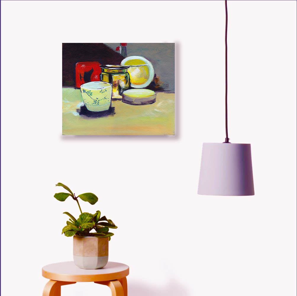 This is altogether different type of Acrylic Painting will catch and hold your attention for long. I love painting reflections in steel. As an artist, I can show presence of steel or water by reflections alone. This type of painting is called as still life painting. This artwork is done in Acrylic on Canvas Board - Size 14" X 12" This painting is ready to hang.