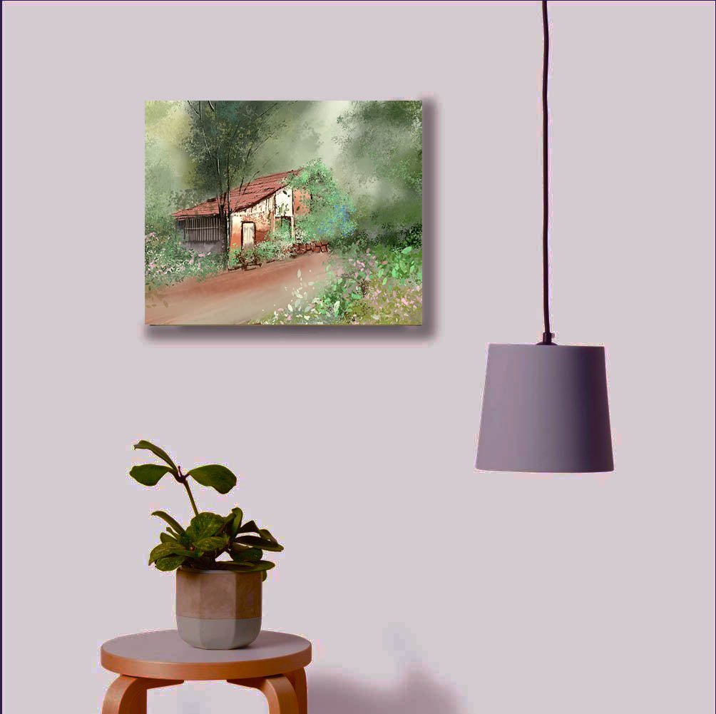 This Digital Artwork will add mystic and mysterious feel to your living, dining spaces and , bed rooms. This old house adds to the suspense feel of this painting. This is customizable digital painting printed on art stucco paper or canvas as per customer's choice. This digital painting appears like original handmade painting from distance. Ideal size 16" X 11" - Unframed