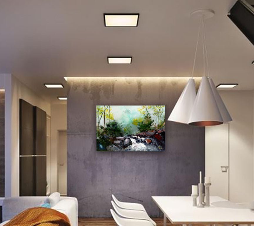 This painting is a gift from nature to you. In the background, you can see abundant nature. The central theme of this artwork is water. Water is a gift from nature and it flows in our lives. This art print is suitable for living, dining, and bedrooms. Unframed ART Print Size is 16" X 11". Shipped all over the world.