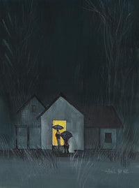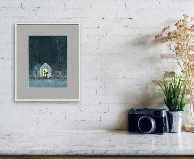 This original watercolour painting for sale has a rainy evening feel expressing the warmth of a home. We enjoy coming back to home when it's raining and dark outside. The yellowish glow of the interior is in sharp contrast with the surroundings in this artwork for sale. This painting has a wet mood. The original unframed painting size is 9" X 12".