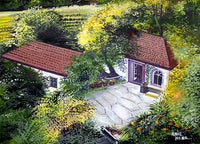 I just love courtyards, they inspire a lot of interaction and build relationships. This artwork will remind you to visit this place mentally whenever possible, even during a busy day. It will be like a relief for a while. It's lively and full of nature. This piece of art will be good for instant meditation. Original size 12" X 9"