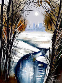 This Icy Landscape Painting For Sale has a beautiful contrast of lights and darks. Blue waters adore the scene with all its reflectivity and depth. Good customizable artwork for living and dining rooms. Original size 11" X 14"