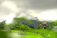 I love the cloud drama in the sky and mother earth's cool response in greenery in this digital artwork. White snow streaks on mountains add to the heavenly feel of this customizable digital painting for sale online.