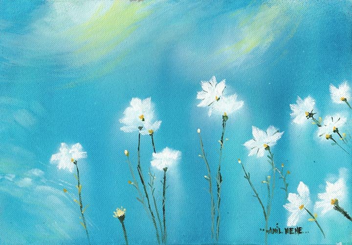 Temperatures started soaring here in India, which inspired me to paint something cooler. To me, Flowers are like heavenly objects for painting. So, this painting is for cooling our minds and going for contemplation or go into trance. The Blue, white, and slightly yellow color combination adds to the charm of this artwork. Original Watercolor Painting For Sale - Size - 11.5" X 8"