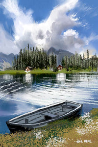 This digital painting showcases the interaction between boat and sky, with land and water in the background, creating a captivating display of dynamic clouds and water. It offers customizable sizing options, with the recommended size being 14" X 21".