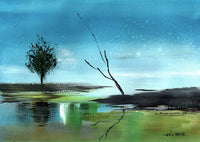 This magnificent dreamland painting transports you to another realm, evoking a trance-like state. Expertly crafted for living rooms and bedrooms, this original artwork measures 13.5" x 9.5" and is unframed.